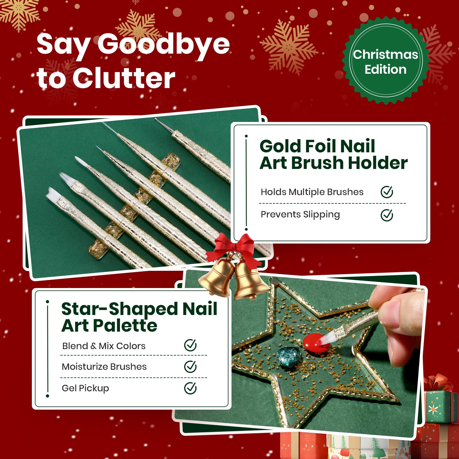 You Will Get: Beetles Christmas Nail Art Brushes set come with 6pcs Nail Art Pens: Dotting Pen*1, French Brush*1, Gradient Brush*1, Multifunctional Brush*1, Long Liner Brush*1, Short Liner Brush*1. And Gold Foil Nail Art Brush Holder*1 & Star-Shaped Nail Art Palette*1, Nail Stickers*2, Storage Pouch*1. Christmas Gifts for Women.
