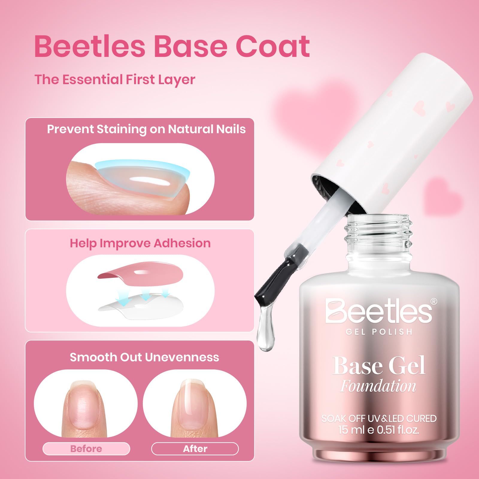- Beetles Valentines-Limited Gel Base and Top Coat: Our best-selling Gel Base and Top Coat Set is now available in a Valentines-Limited Edition Packaging – perfect for adding a festive touch to your nail routine! Practical and beautiful, it's the ideal gift for the special day. Whether you're treating yourself or surprising a nail art lover, this set brings joy and thoughtful charm. Limited stock – get it before it's gone!