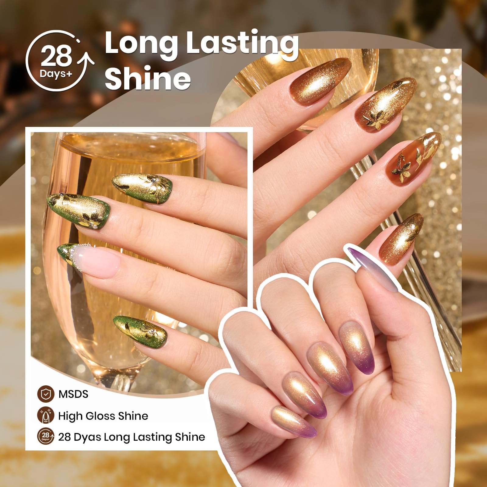 【Warm Tips】Gently shake well before use—especially for metallic, glitter, and cat eye gel nail polish—to evenly mix natural settling of pigment particles.Please conduct a skin test before use with cat eye gel nail polish. Professionally formulated and only used for nails. Avoid contact with eyes, mouth, and skin. In case of contact with them, rinse immediately with water. Stop using the product if redness and itching develop