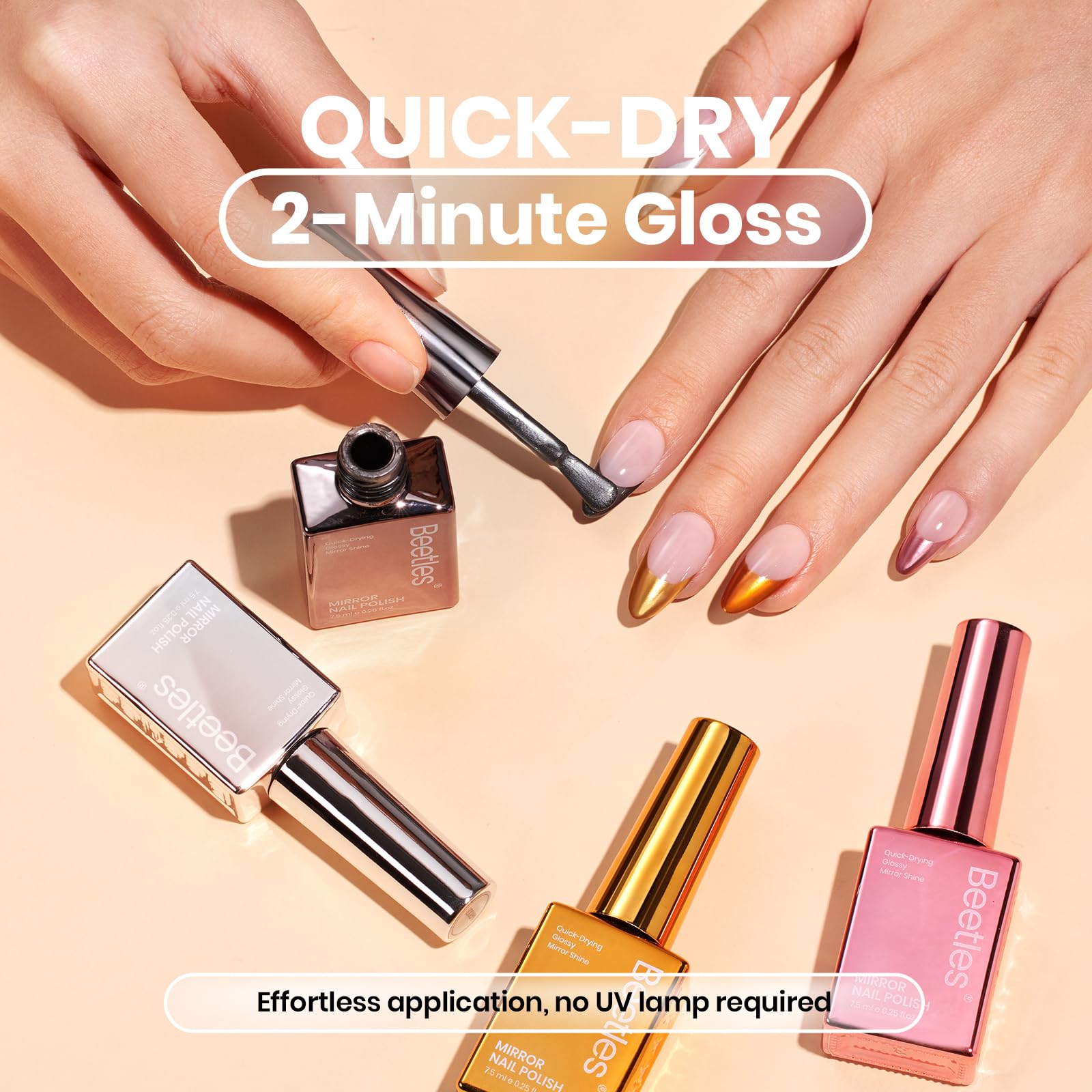 - Stunning Mirror Shine: Beetles air dry nail polish can create an extremely shiny, mirror-like chrome effect, as if it were a real mirror - perfect for creating eye-catching manicures and trend-setting makeup looks.