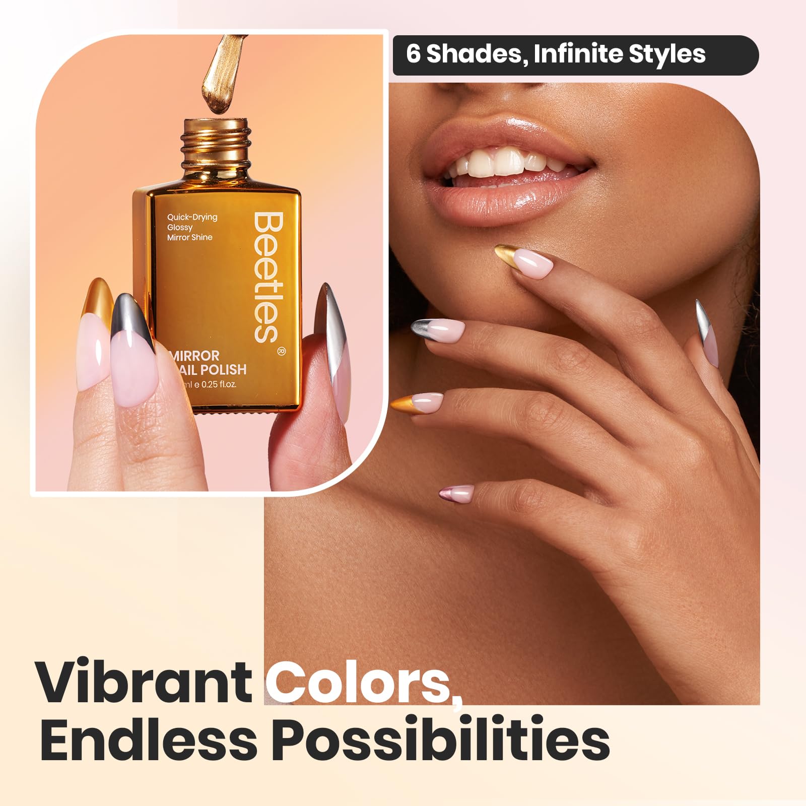 Beetles Mirror Nail Polish Set – Metallic Muse 6 Colors Quick-Drying & High Gloss Nail