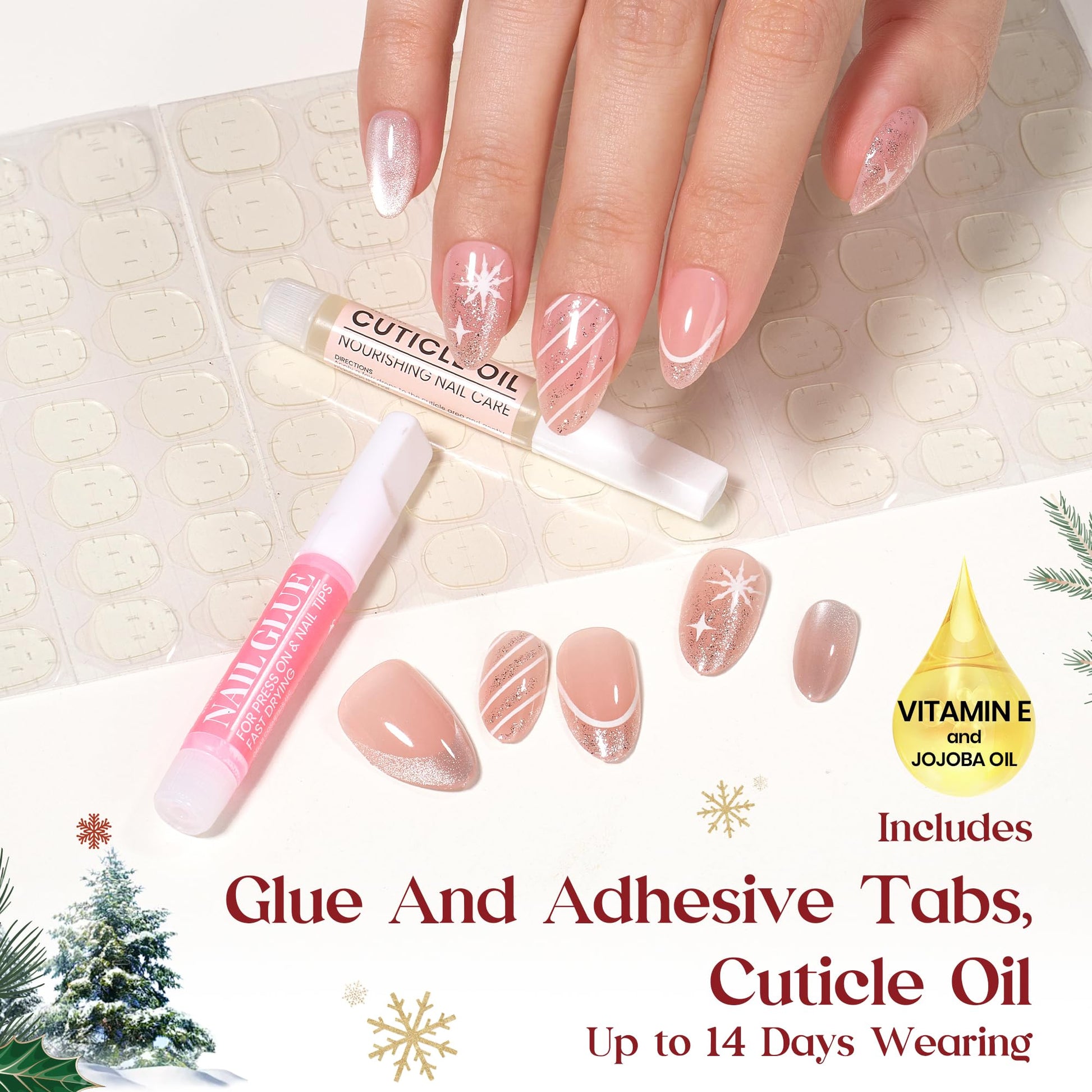 Beetles Press On Nails Christmas Snow - 32Pcs 16 Sizes Short Almond Press On Nails