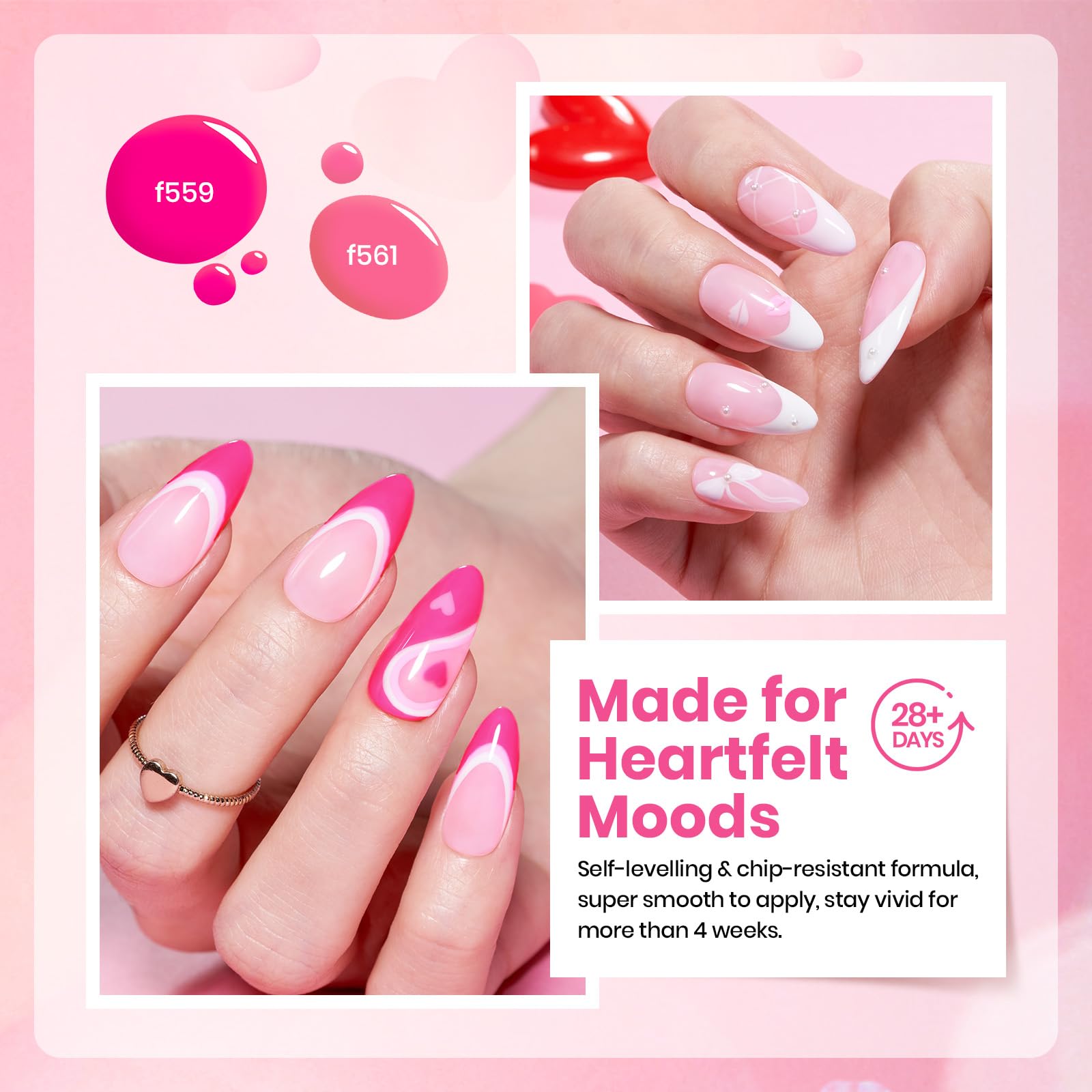 - 【Gentle & Salon Long Lasting】Beetles gel nail polish set has been formula upgraded to ensure gentle treatment for nails. The Valentine's Day nail art created by gel nail polish pink set can be long-lasting and durable, allowing you to maintain your beauty in daily household chores, hand washing, and dating dinners. It is recommended to match with the basic gel primer and finish paint to achieve a lasting shiny effect of 28 days.