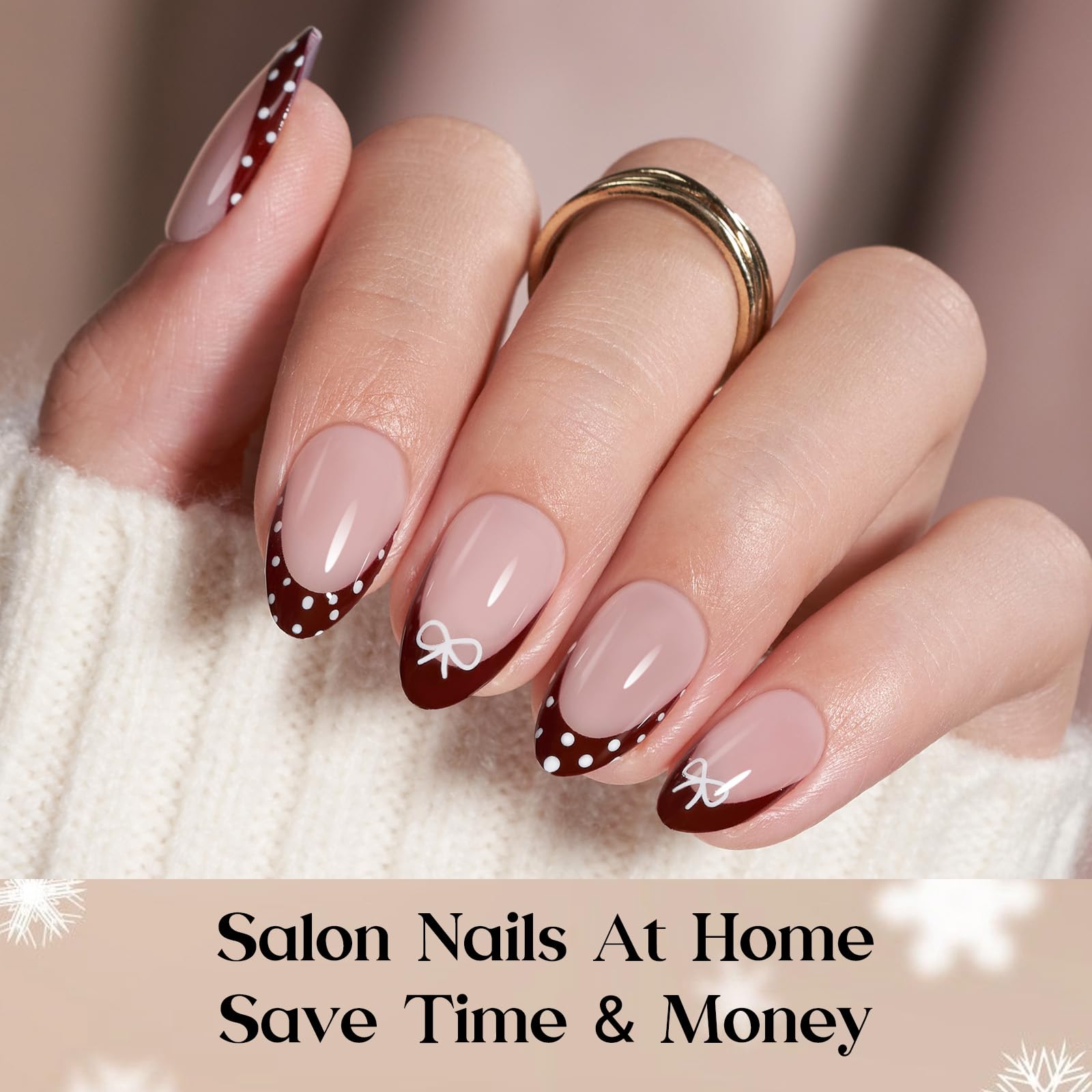 Beetles X Press Plus Gel Nails Kit Rouge French - 160Pcs 16 Sizes All-in-One Kit 5 Colors Christmas Press On Nails Short Almond