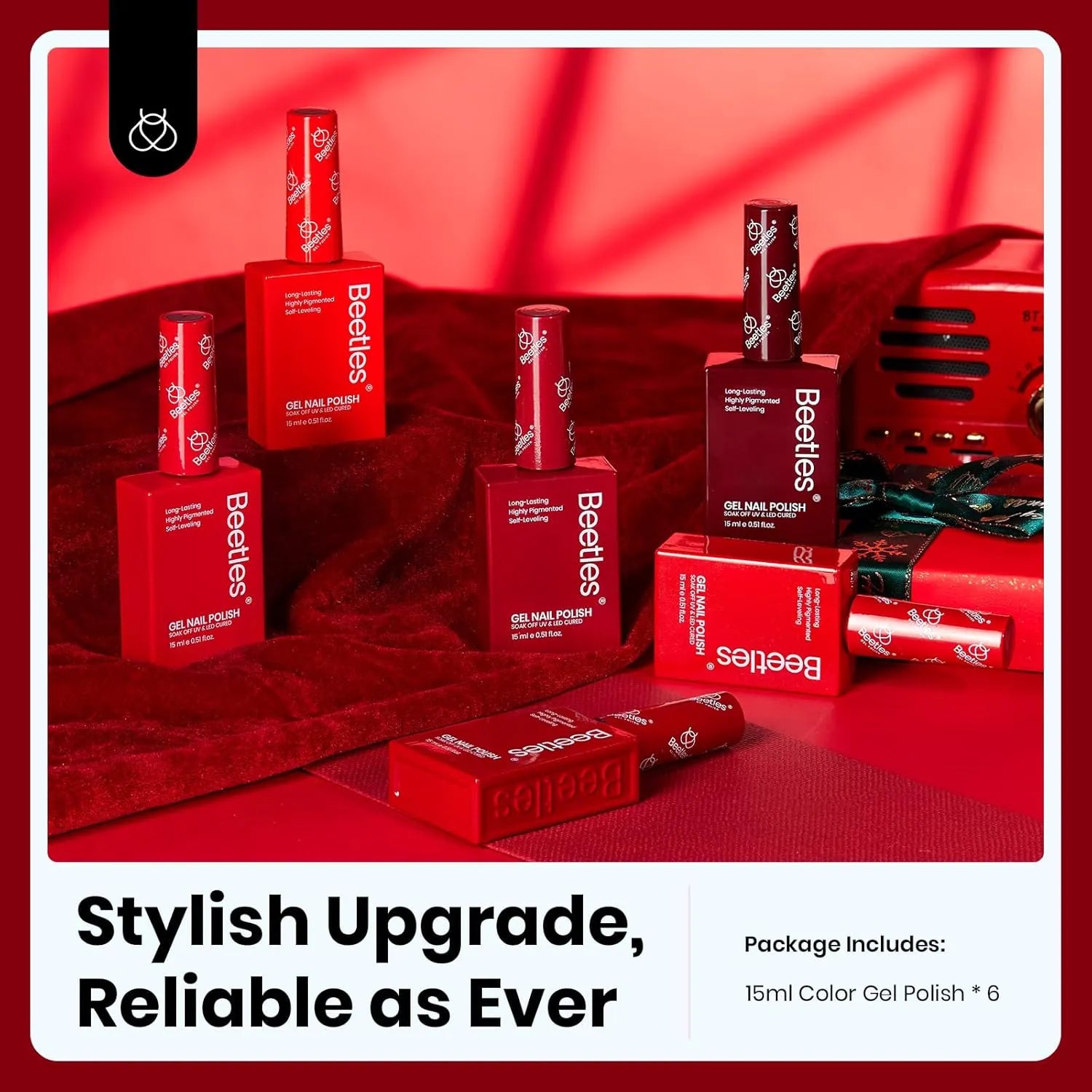 - 【High Quality&Long Lasting】: Beetles 6pcs red gel nail polish kit have low odor. With proper application, it lasts at least 4 weeks. Kindly note: After opening, valid for 12 months.This item is UV gel. It is still sticky after curing. It must be used with a base coat and top coat! This item does not include base&top coat, which needs to be purchased separately.