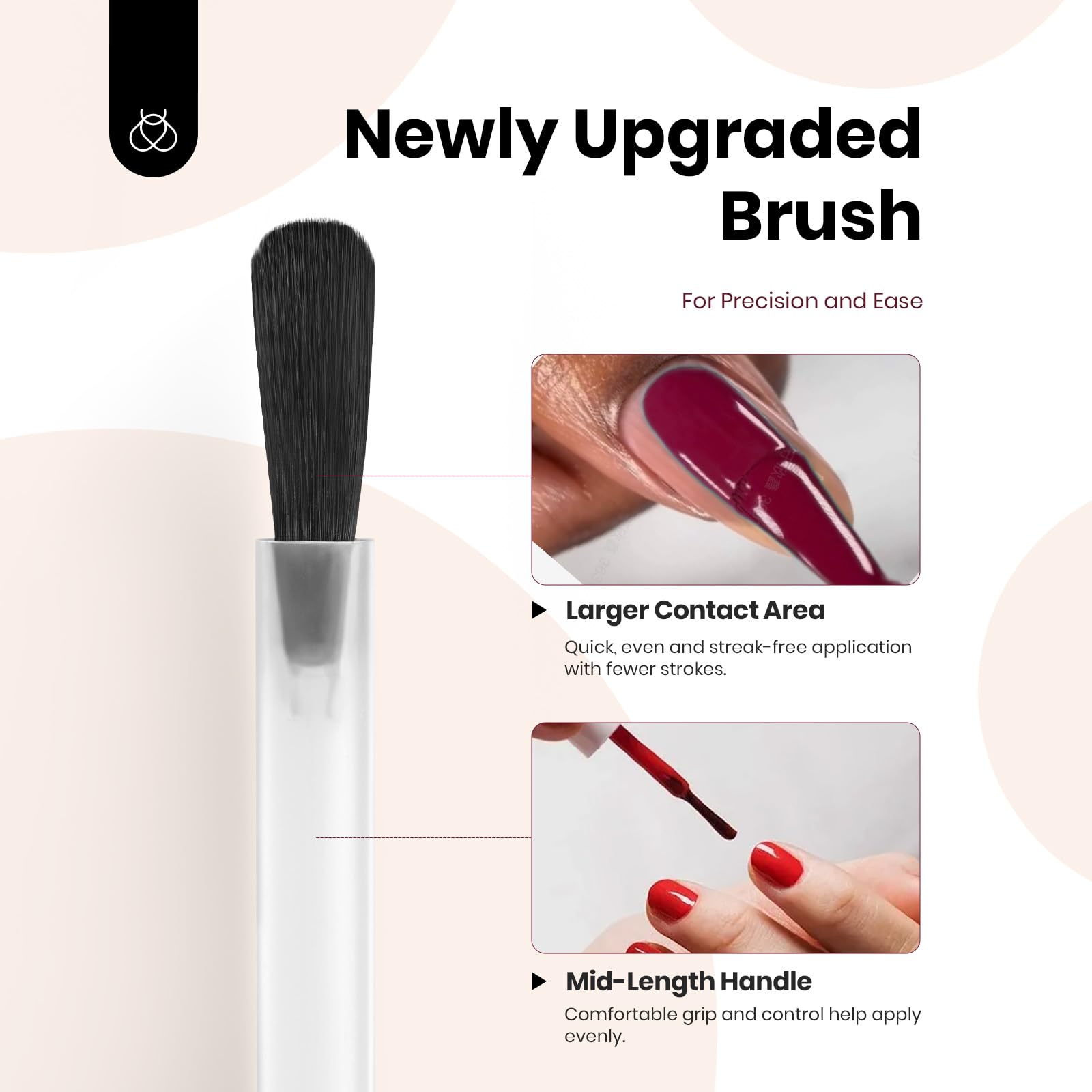 4. Finish with a top coat and cure for 60 seconds.Tips:*Please apply each coat in a thin layer.*The product is gel nail polish; it needs to be cured under a UV/LED lamp.