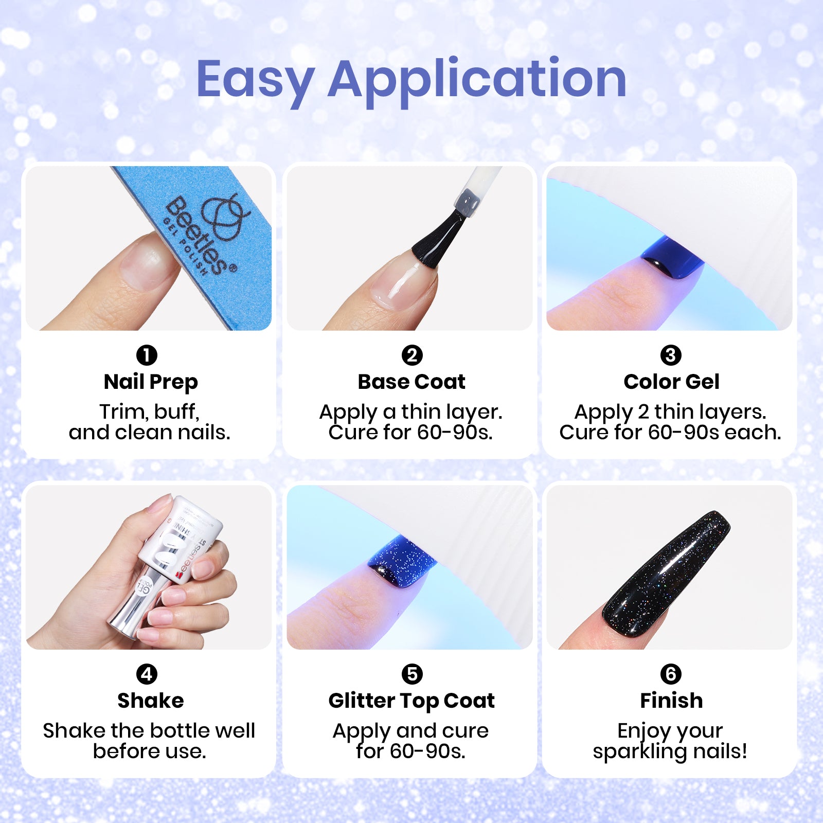 4. Finish with a top coat and cure for 60 seconds.Tips:*Please apply each coat in a thin layer.*The product is gel nail polish; it needs to be cured under a UV/LED lamp.
