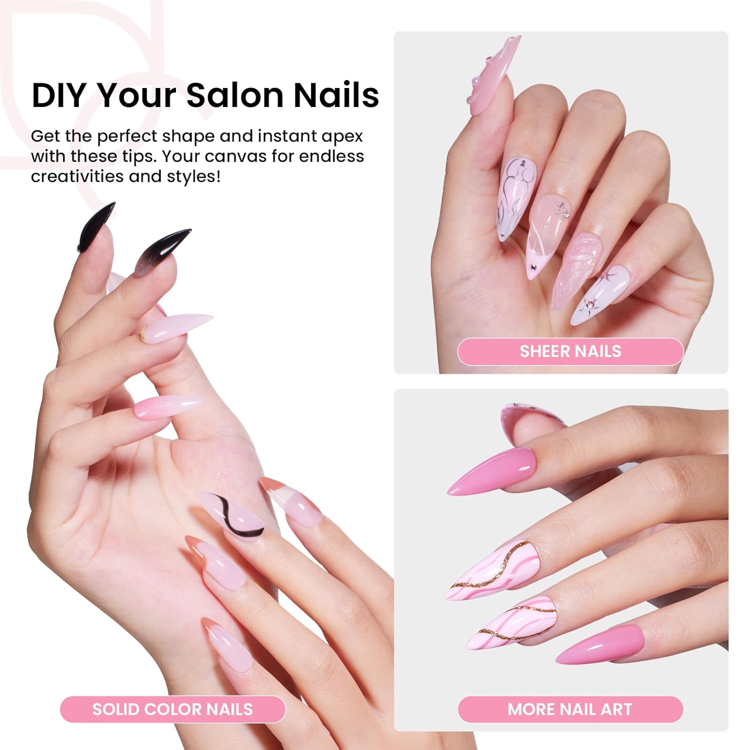 Tipex Medium Stiletto Half Matte Nail Tips Kit | 224pcs